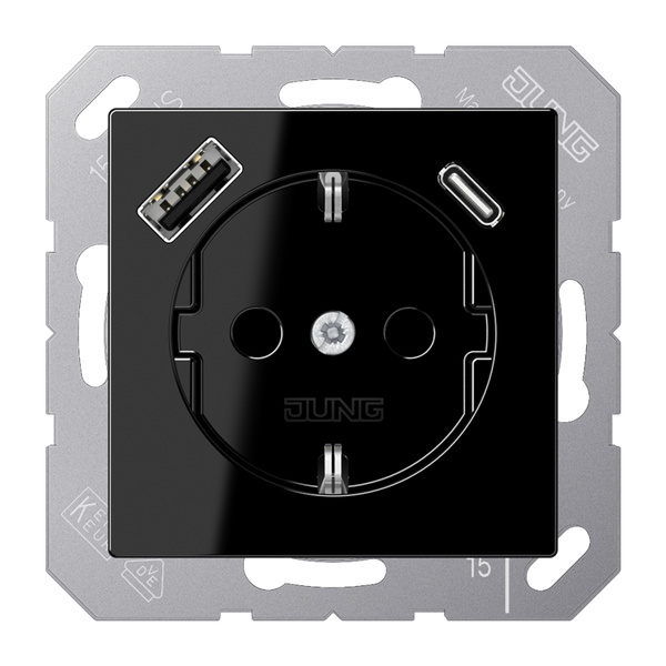 SW mit integriertem erhöhten Berührungsschutz (Safety Plus) mit 1 USB-Buchse Typ A und 1 USB-Buchse Typ C mit Federklemmen für starre und unbehandelte flexible Leiter bis 2,5 mm2 Verbindungsklemmen nach DIN VDE 0620 Montage in Gerätedose mit Abmessungen nach DIN 49073 Tiefe der Gerätedose (Innenmaß): min. 57 mm Material: Thermoplast