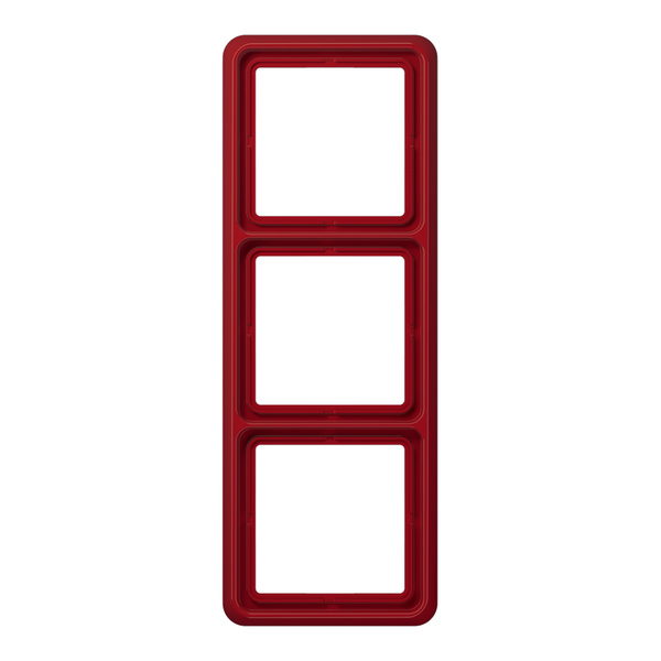 Rahmen 3fach, rot für waagerechte und senkrechte Kombination Mit Dichtungsflansch Art.-Nr.: 551 WU ist der Schutzgrad IP44 gewährleistet. Material: Thermoplast Maße (B x H): 81 x 223 mm