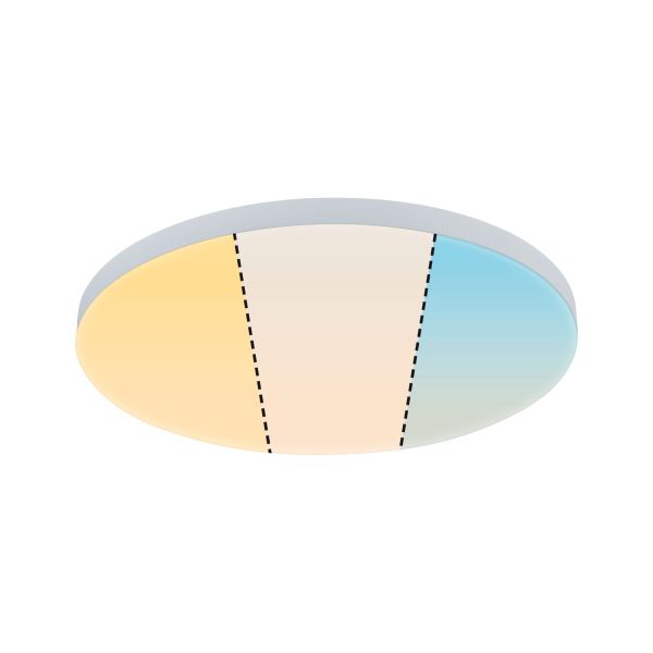 Das rahmenlose Aufbaupanel Velora lässt sich sowohl an der Decke als auch an der Wand montieren. Durch die ultraflache Bauform wird das runde Panel mit einem Durchmesser von 400mm eins mit Wand und Decke. Die satinierte Oberfläche der Diffusorplatte sorgt für angenehm flächiges Raumlicht. Dank der stabilen Metallunterkonstruktion gelingt die Montage besonders einfach und das Panel scheint zu schweben. Dank integrierter WhiteSwitch-Funktion, lässt sich die Lichtfarbe durch mehrmaliges Betätigen eines handelsüblichen Lichtschalters in drei Stufen einstellen.