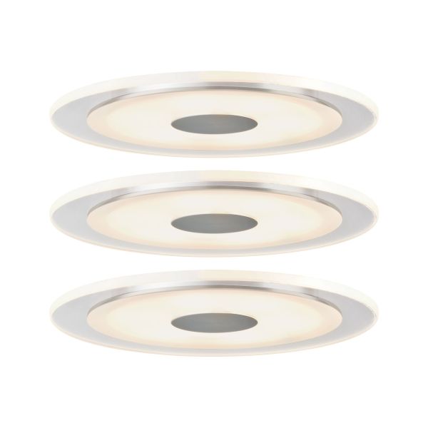 Edles Material hochwertige Verarbeitung. Die dekorativen LED Einbauleuchten der Premium Line bieten das effiziente und dabei wohnlich warmweiße LED- Licht und erfüllen selbst höchste Ansprüche an Materialqualität und Design. Set aus 3 Leuchten inkl. LED-Modul Material: Alu / Acryl Farbe: Alu gedreht / Satin Energiesparende LED-Technik (spart bis zu 80 % Energie gegenüber herkömmlichen Glühlampen) Schutzart: IP23 (bei Deckenmontage) Durchmesser: 150mm Einfacher Anschluss mit Steckverbindern Schutzklasse II Farbtemperatur: 3000K - Warmweiß Inkl. Transformator