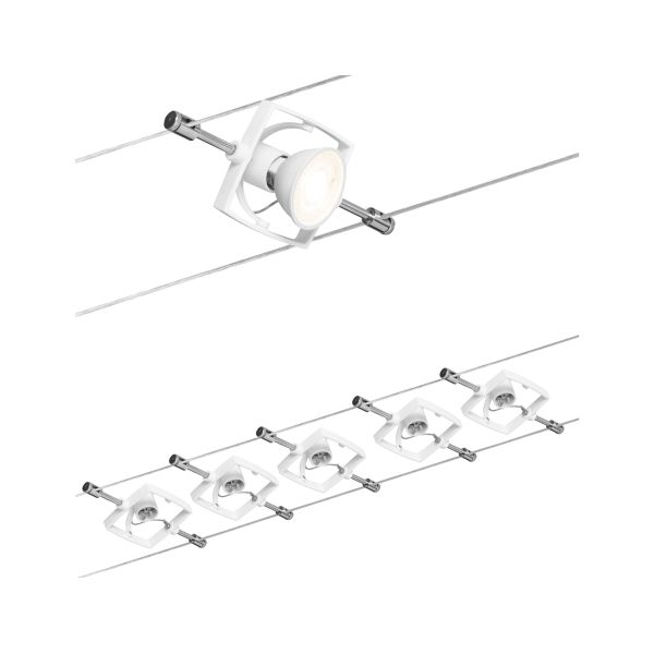 Egal ob gerade, schräg oder verwinkelt - Seilsysteme passen in jeden Raum. Die Serie Mac II kann sowohl an der Wand als auch an der Decke montiert werden und bietet dadurch grenzenlose Gestaltungsmöglichkeiten. Das Basisset lässt sich individuell durch Einzelspots, Umlenker und weiteres Zubehör ergänzen - bitte beachten Sie dabei die maximale Trafoauslastung. Komplettset aus Trafo, Seil, Spots und Montageanleitung Ideal zur Ausleuchtung großer und verwinkelter Räume Leuchtmittel frei wählbar Nicht vergessen: Passendes Leuchtmittel gleich mitbestellen! Für Wand- und Deckenmontage geeignet