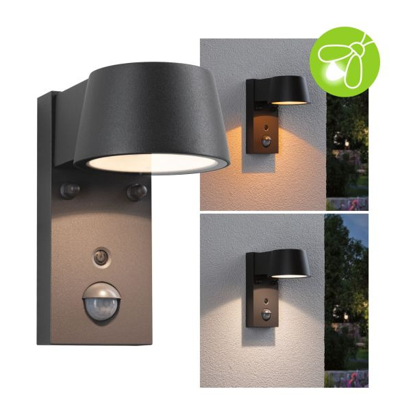 Die warmweiße LED Außenwandleuchte Capea mit einer Leistung von 6W setzt attraktive Lichteffekte und erhöht die Sicherheit durch Beleuchtung im Außenbereich. Sie bringt Licht an die Außenwände und leuchtet den Eingangsbereich gleichmäßig aus. In der Grundeinstellung leuchtet die Außenwandleuchte mit 20 % Helligkeit und 2.200 Kelvin. Sobald sich jemand annähert, wird das Außenlicht durch den verbauten Bewegungsmelder auf 100 % Helligkeit und 3.000 Kelvin geschaltet. Nach etwa 30 Sekunden wird wieder auf die gespeicherte Lichtfarbe und Helligkeit zurückgeschaltet. 2.200 Kelvin liegen außerhalb des sichtbaren Bereiches für die meisten Insekten, somit werden diese nicht von der zusätzlichen Lichtquelle angezogen und die Leuchte ist damit besonders insektenfreundlich. Aktiver Schutz von Insekten durch bewussten Einsatz der Farbtemperatur Farbtemperatur: 2200K - Goldlicht bis 3000K Warmweiß Licht mit Tunable-Warm-Funktion für gemütliches und insektenschonendes Abendlicht IP-Schutz: IP44 - spritzwassergeschützt Für den Einsatz im Außenbereich geeignet Für attraktive Lichtakzente an Außenwänden Dämmerungsschalter schaltet erst ab einer bestimmten Dunkelheit ein Automatisches Schalten durch integrierten Bewegungsmelder Für gemütliches und insektenschonendes Abendlicht