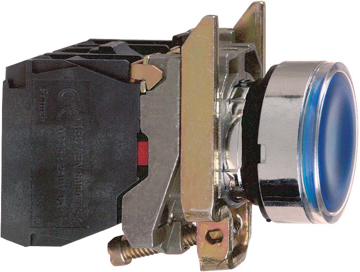 Die Baureihe Harmony XB4 aus Metall bietet eine Vielzahl an 22mm Komplettgeräten wie Drucktaster, Leuchtmelder und Wahlschalter bis hin zum Not-Aus-Schalter. Zusätzlich ist es durch den modularen Aufbau der Geräte möglich, alle Bestandteile auch als Einzelelemente zu beziehen sowie wahlweise auch für 30mm Einbaumaß. Aufgrund der Qualität, der Flexibilität und der extremen Robustheit (Schutzklassen bis IP69K) eignen sich die Geräte ideal für die meisten Anwendungen in der Industrie und in Gebäuden. Dieser Leuchtdrucktaster in der Farbe blau beinhaltet eine universelle LED und benötigt eine Versorgungsspannung von 24V ACDC. Der Taster verfügt über 1 Schließer und 1 Öffner. Montiert in einer 22mm Bohrung erfolgt der Anschluss des Geräts durch Schraubklemmen auf der Rückseite des Produkts. Aufgrund der Vielzahl von vorhandenen Produktstandards und Zertifizierungen geeignet für den internationalen Einsatz. Dank des Green Premium Umweltzeichens können Sie detaillierte Informationen zu Materialinhalten, Umweltauswirkungen und Kreislaufwirtschaft erhalten, die Ihre Nachhaltigkeitsziele unterstützen.