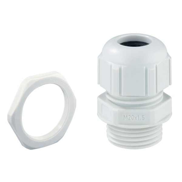 Kabelverschraubung, IP68, mit Zugentlastung, Polyamid, M_ x 1,5mm, mit Gegenmutter, grau, Dichtbereich 2-6,5mm, Gewindelänge 8mm