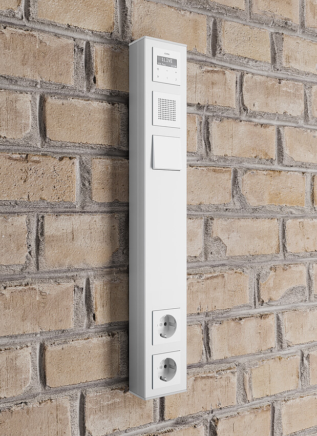 Von einer schlichten Klingel über modulare Systeme bis hin zu den Videoterminals sind fast alle Anforderungen abgedeckt. Die Türsprechanlage ist sowohl für Aufputz- als auch für die Unterputzmontage erhältlich und sogar die Gira Energiesäulen können als Aufnahme dienen.